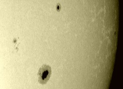 Sporadic large sunspots are visible between quiet periods of the solar activity.