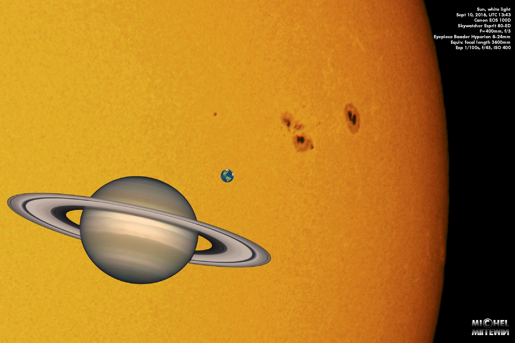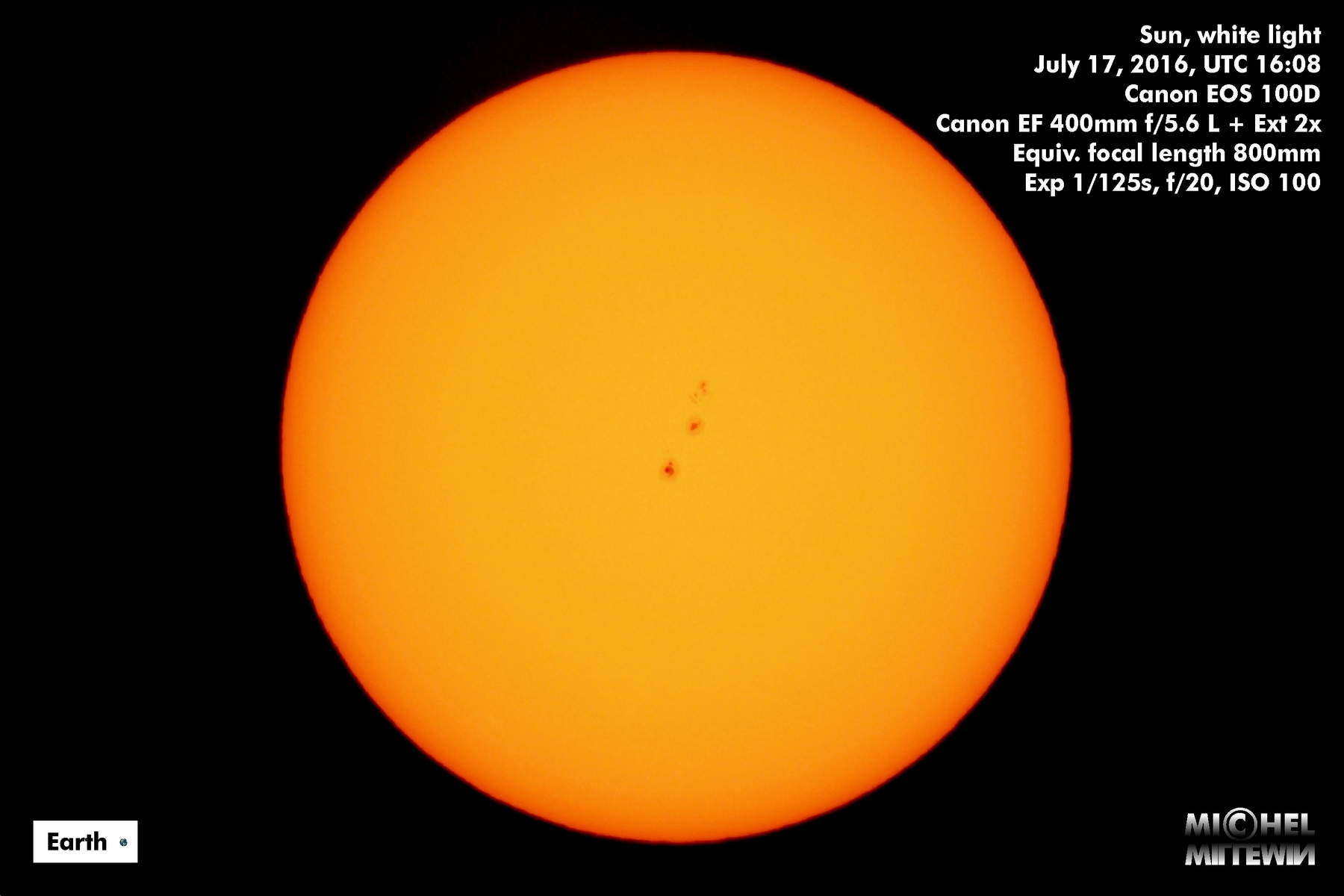 · Sun image taken on September 10, 2016, @ 13:43 UTC (white light)